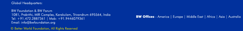 The evolution of the Better World Foundation began from a thought and culminated in a vision. Experience facilitated the transformation of vision into a mission and its associated planning and programming. Exposure assisted to expand the mission. Passion activated the interest for the mission. Inspiration within has driven the flow. The missionary zeal ignited the strong will and daring initiatives to undertake the journey.